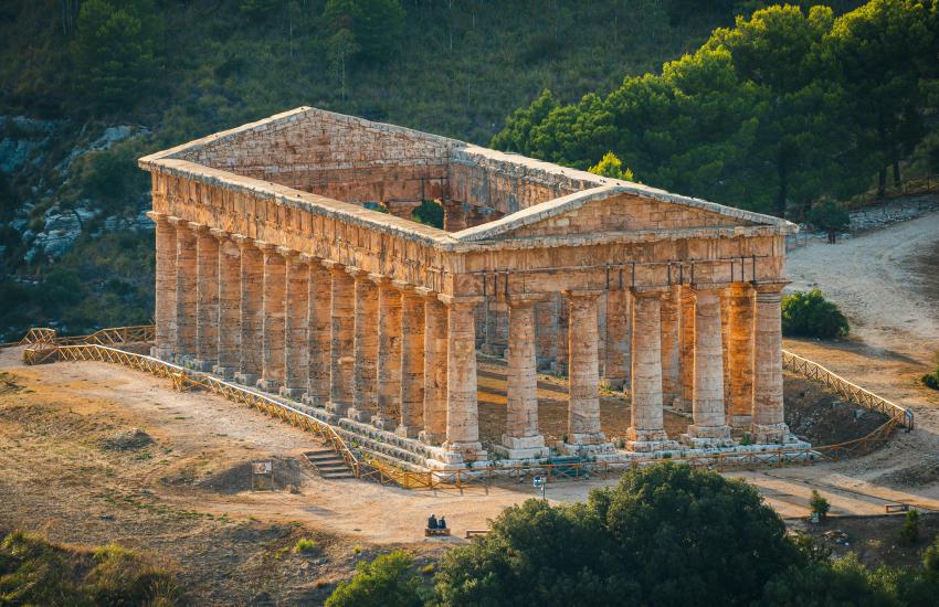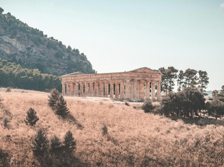 - Segesta: Immerse yourself in the history of the ancient Elymian civilization by visiting the majestic Doric Temple, a masterpiece of classical architecture surrounded by nature. Complete your experience with a visit to the ancient theater, from which you can enjoy a panoramic view of the surrounding valley.