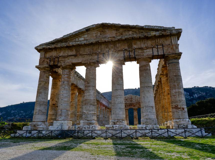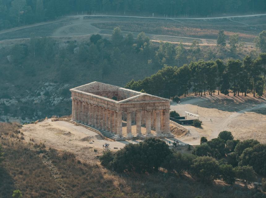 - Segesta: Immerse yourself in the history of the ancient Elymian civilization by visiting the majestic Doric Temple, a masterpiece of classical architecture surrounded by nature. Complete your experience with a visit to the ancient theater, from which you can enjoy a panoramic view of the surrounding valley.